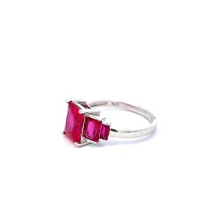 Anillo plata cuadrado piedras rosas