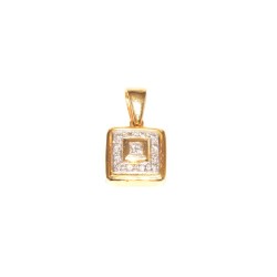 El oro bicolor de 18k brinda una base exquisita para el diseño cuadrado, que se ve realzado por una fila de diamantes que rodean el colgante, creando una expresión de lujo. En el centro, un diamante resplandece, añadiendo un toque de brillo adicional y destacando la elegancia atemporal de la pieza.